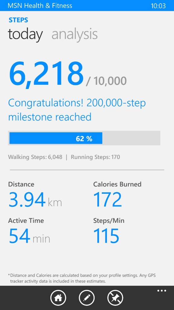 Who needs a fitbit when you have one of these on your phone? A real time, steps count tracker to help keep you fit and also tells you the calories burnt and time taken and also keeps the history.